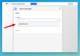 The first step of setting up a workflow to trigger based on an OpenPhone event is to create a webhook trigger in the Workload tool.